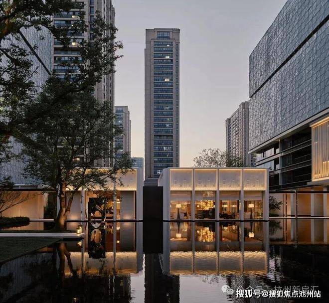 建筑形制上,项目以现代简洁的立面构图重塑传统意象,通过精致细节与温暖米色石材的巧妙搭配,形成独具辨识度的建筑符号。