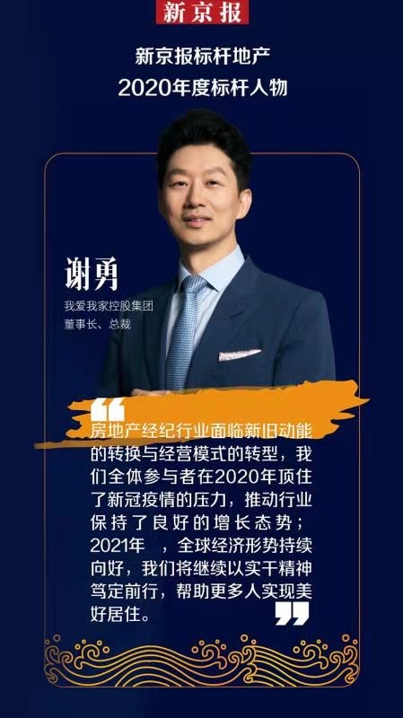 我爱我家董事长谢勇获评“2020年度标杆人物”