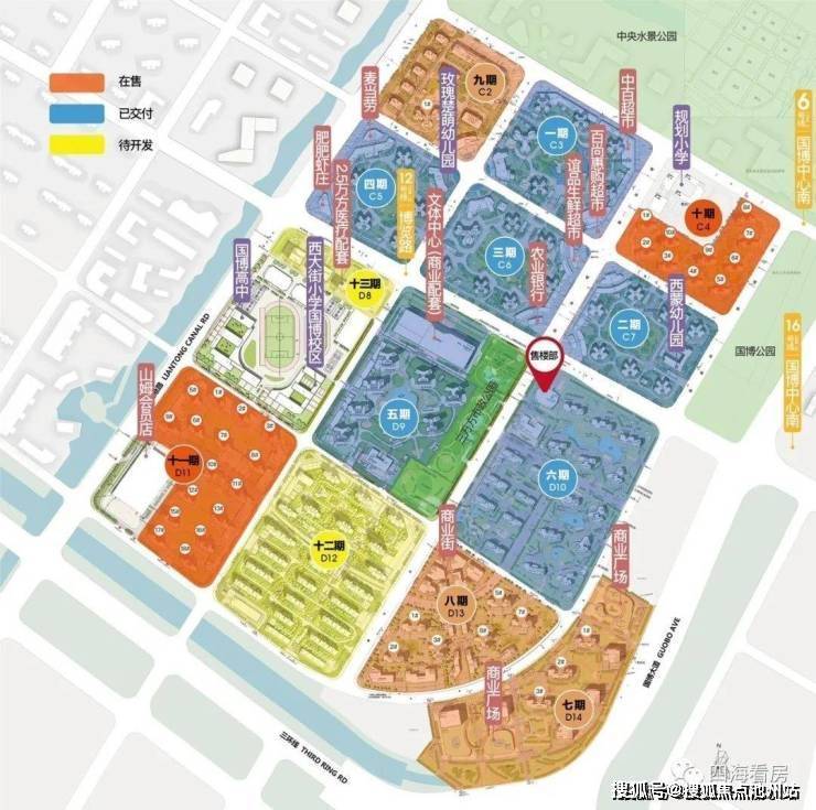 城投融创国博城,原案名为武汉国博新城,项目总规划面积700万方,住宅部分总建面约460万方,分C\D地块,共13期开发,1-7期已交付,10期售罄,8、9期有少量大户型在售,目前主推的是11、12期,13期待开发,分别是D11、D12、D13号地块。