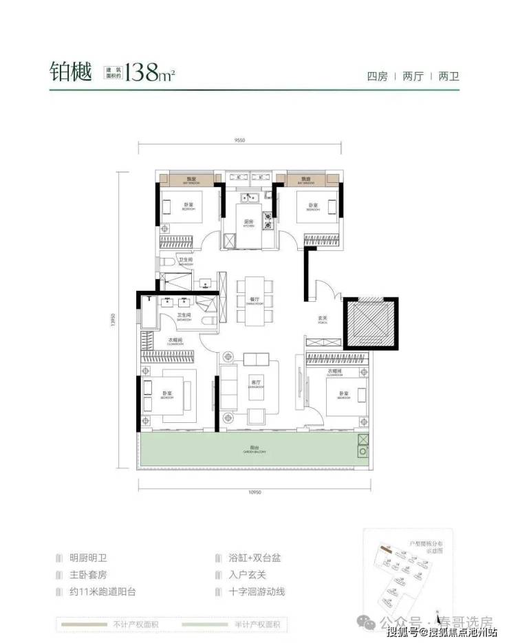 得房率约95%,实得面积媲美市面上160平大平层。比同区域143平户型实得面积直接可以多出主卧套房面积。