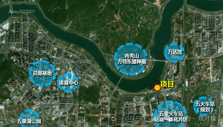 项目位于五象大道旁,属于文旅板块,周边有总部基地、万达茂、方特东盟神画、新媒体中心、五象火车站(规划)等。距总部基地约4公里,与方特东盟神画、青秀山隔江相望,距离规划的五象火车站仅1公里。目前地段略显偏远,但长期发展看,该区位仍有较大提升空间。