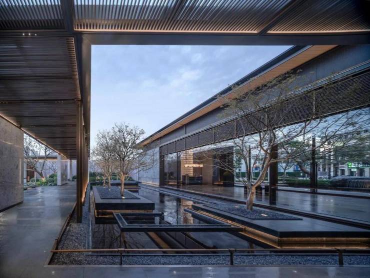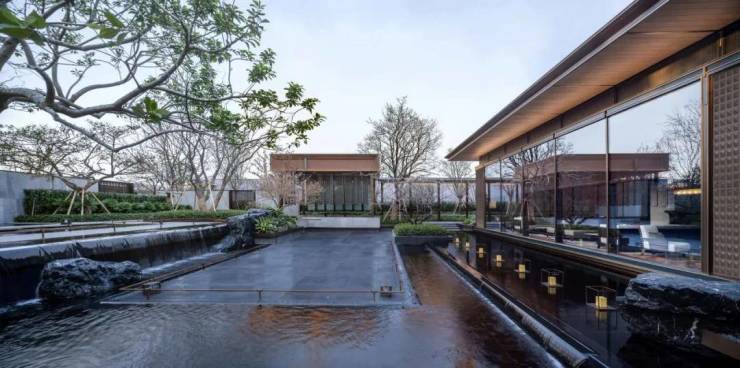 在中国传统文化中,水对于住宅而言十分重要,礼仪空间结合水景突出仪式感,承载东方的传统文化精神。