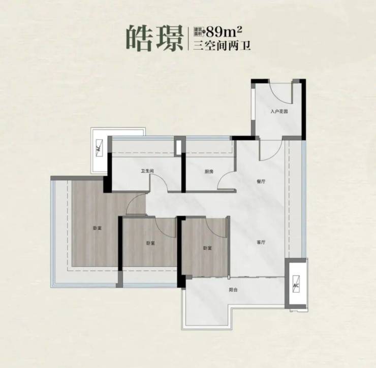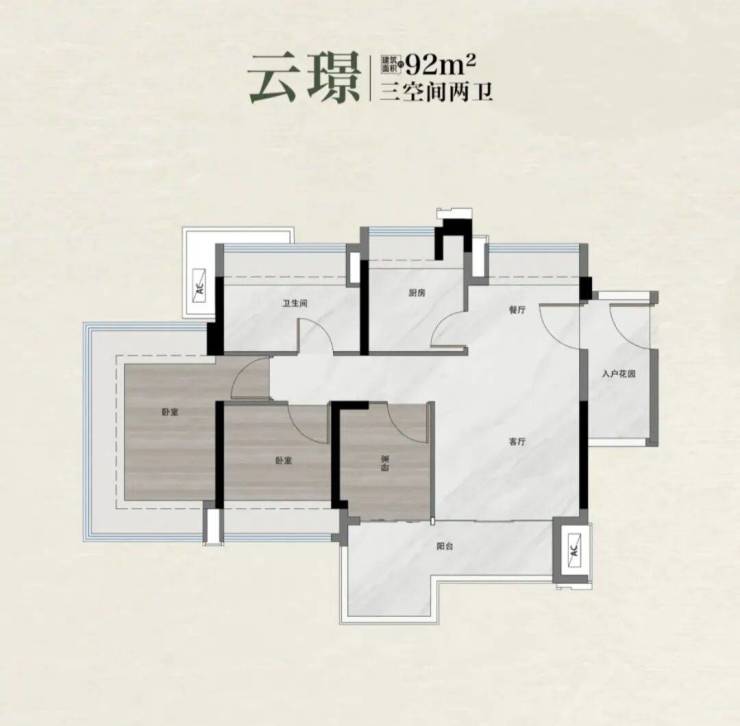 3栋塔楼,包含建面89㎡、92-99㎡户型,通过阳台延伸空间感,贴合了年轻家庭对总价和功能性的双重诉求。
