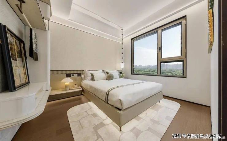 我在样板间感受最深的是,“在做到宽厅的同时,主卧依旧放得下双床头柜”。