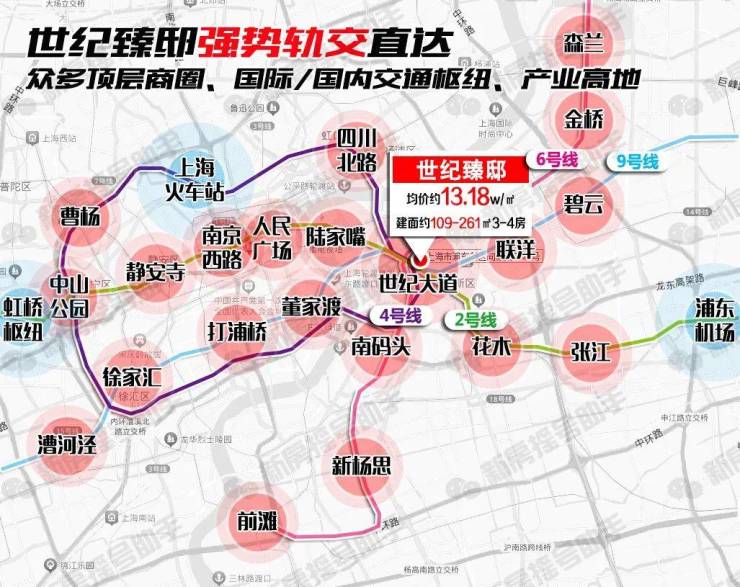 步行15分钟生活圈内,涵盖四轨交,距离2/4/6/9号线世纪大道站直线距离约400米,可直达市内众多CBD、双机场、双高铁站、国际金融贸易区、国家级产业高地等等……这样的公共交通通达度在整个上海几乎没有对手!