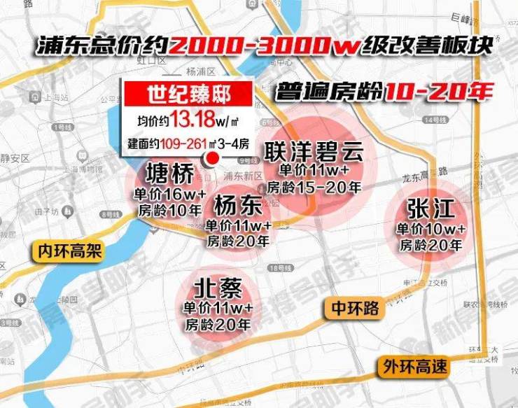 陆家嘴区域断供,还成功带出了周边几个高端住宅区:世纪公园、联洋碧云、花木板块等。遗憾的是,目前浦东2000-3000w预算能买的改善小区,普遍房龄在10-20年以上。