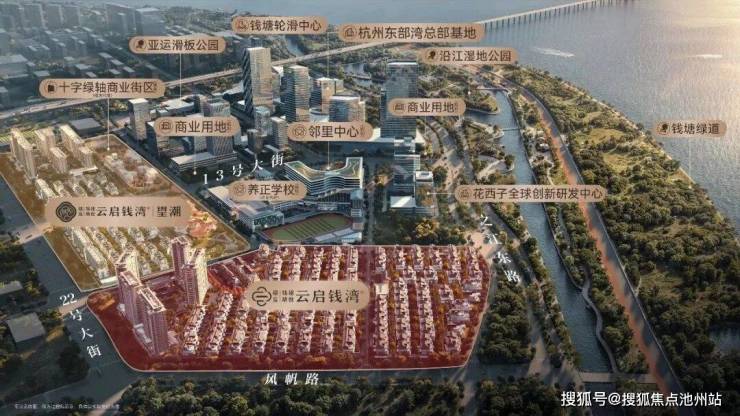 而纵向联通的,依次有养正学校(在建)、邻里中心、企业总部和江滨绿道,并一路浩荡,止步钱塘江,是继钱江新城、江河汇之后的又一沿江封面。