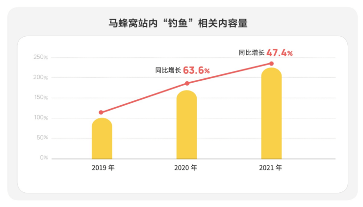 作为中国较大的旅行玩乐社区,也是年轻人用得更多的旅游 APP,马蜂窝大数据往往反映了年轻一代的玩法潮流。自2020 年起,马蜂窝站内“钓鱼”相关内容量逐年递增,90 后在2021年钓鱼人群中占比达到了30.8%,成为了这项运动不可忽视的“生力军”。他们用飞蝇钓等“进击的”路亚钓法打破了钓鱼的固有印象,将这项“静止”的活动玩成了紧张激烈的全身运动。