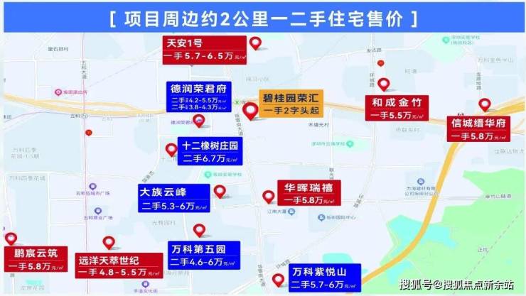 周边约2公里范围,坂田在售新房住宅售价普遍在4.8-6.5万元/㎡;二手住宅售价普遍在4.2-6.7万元/㎡。