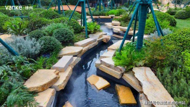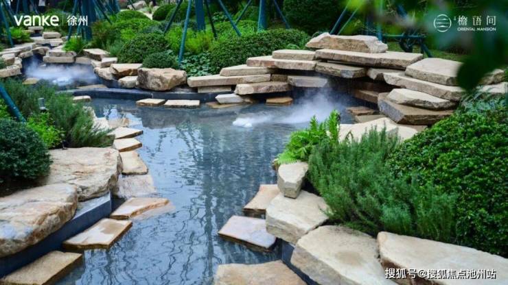 多数社区景观常停留在“观赏” 层面,而檐语间约 2000㎡的山屿水庭,却真正实现了 “景观即生活”。