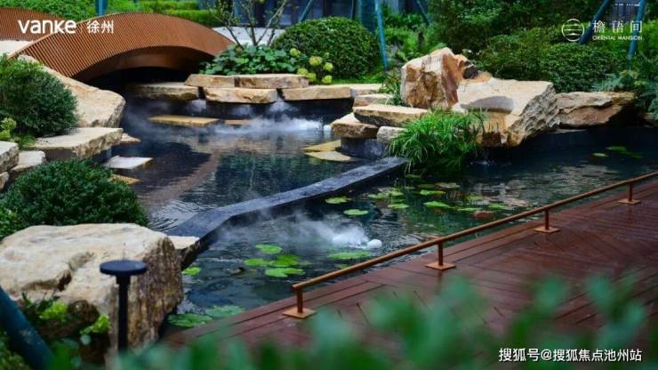 居于此处, “游园入画” 成了日常的生活体验。踩过带肌理的石径,听溪水潺潺伴耳畔,看锦鲤在泛光的溪里摆尾,“归心” 拱桥的弧度映着草木,走几步便是新景致,像从画的这帧踱到那帧。