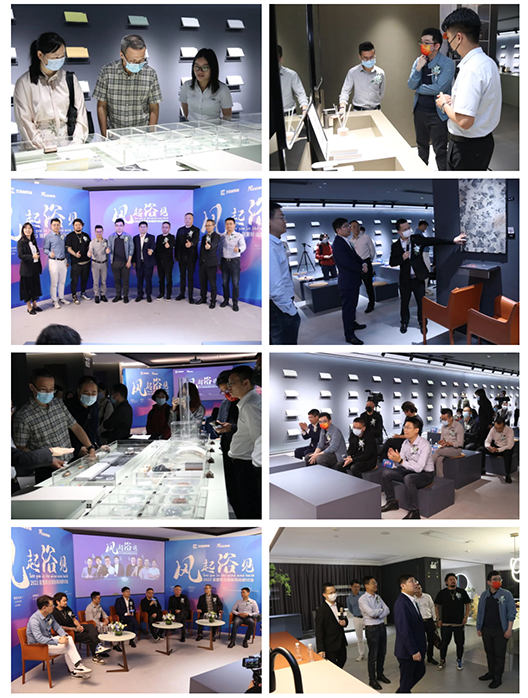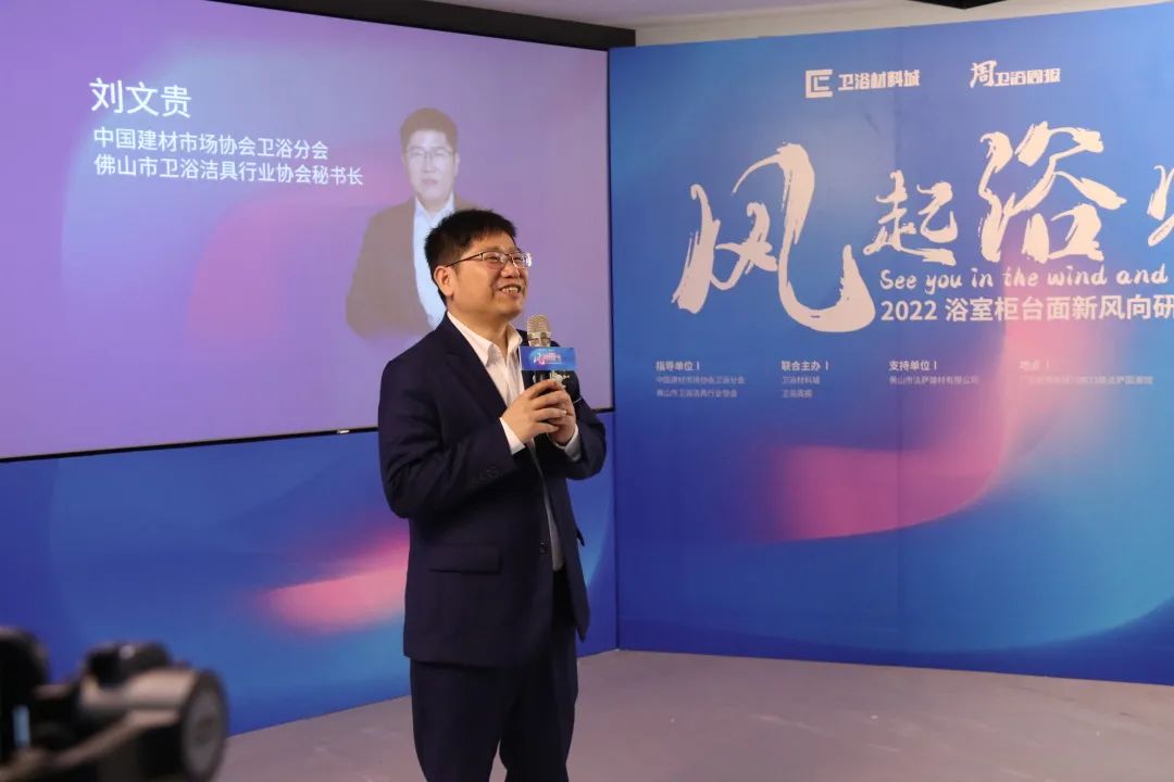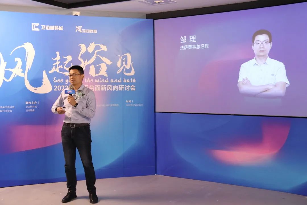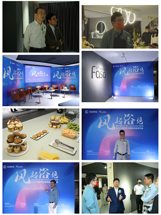 3月26日下午,由中国建材市场协会卫浴分会、佛山市卫浴洁具行业协会指导,卫浴材料城、卫浴周报联合主办,法萨支持的“风起浴见·2022浴室柜台面新风向研讨会”在智慧新城法萨国潮馆举行。卫浴协会刘文贵秘书长、箭牌家居集团箭牌家居集团董事副总经理谢炜、阿洛尼总经理涂克增、箭牌家居集团浴室家具研发中心总监鲁作为、梵度空间总经理张亚刚、劳宾总经理李鑫龙、恒洁浴室柜及淋浴房产品研发总监董振宇、富兰克副总经理方平、法萨董事总经理邹理,卫浴材料城总经理高原、卫浴周报总经理张丹丹等嘉宾及媒体朋友一起对浴室柜发展风向进行了深度交流。