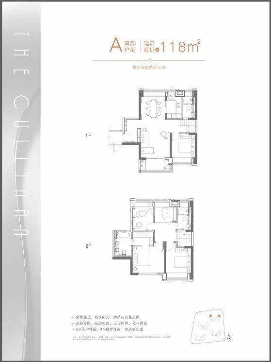 A户型:建面约118㎡复式五房两厅三卫