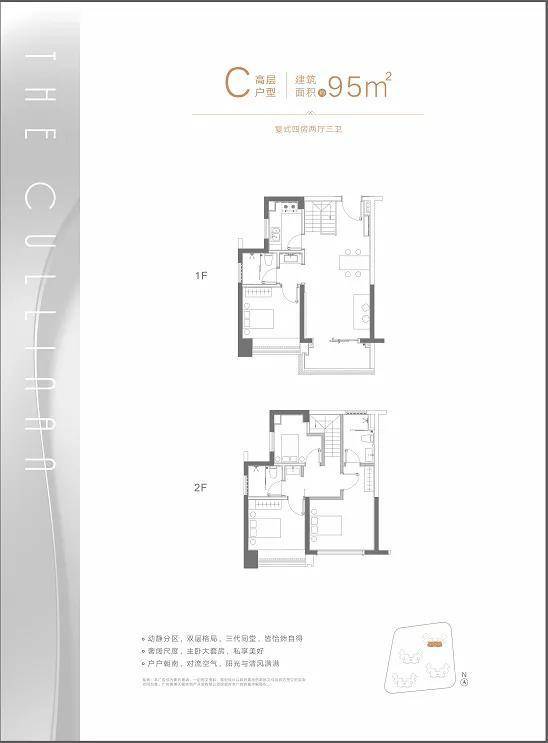 C户型:建面约95㎡复式四房两厅三卫