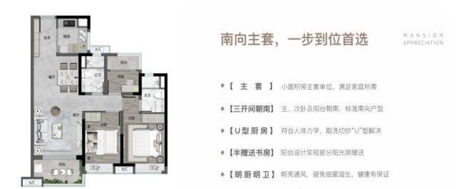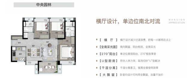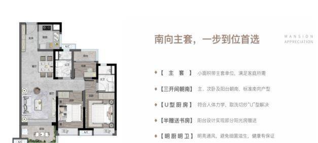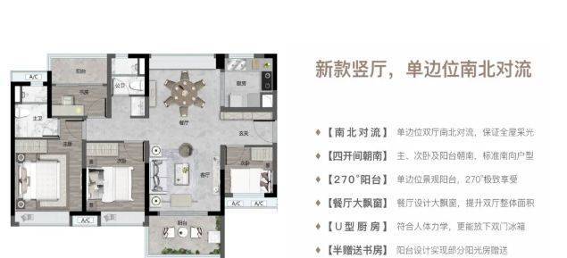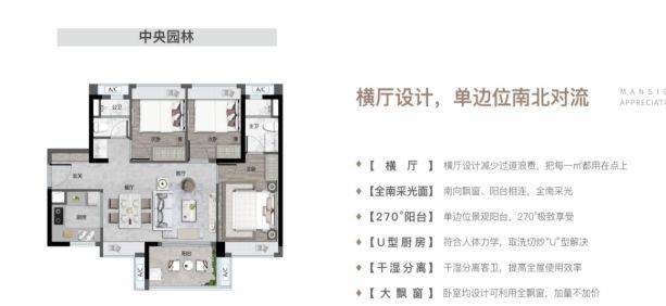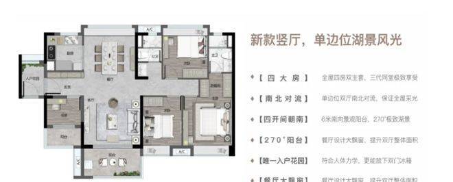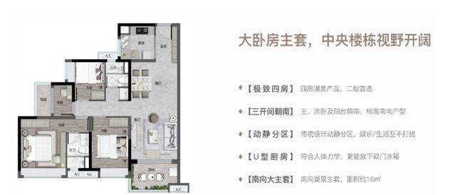111㎡四房二厅二卫:南向三开间望湖,视野开阔,对于二胎家庭来说,空间布局合理,能满足家庭成长需求。