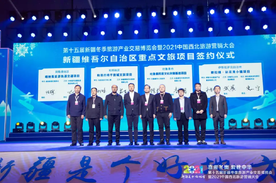 27日,第十五届新疆冬季旅游产业交易博览会暨2021中国西北旅游营销大会(以下简称“冬博会”)在阿勒泰地区富蕴县开幕。当天,全疆12个地州37个重大文旅项目中8个在现场签约,还有29个项目将在冬博会期间签约,签约总金额近695亿元。