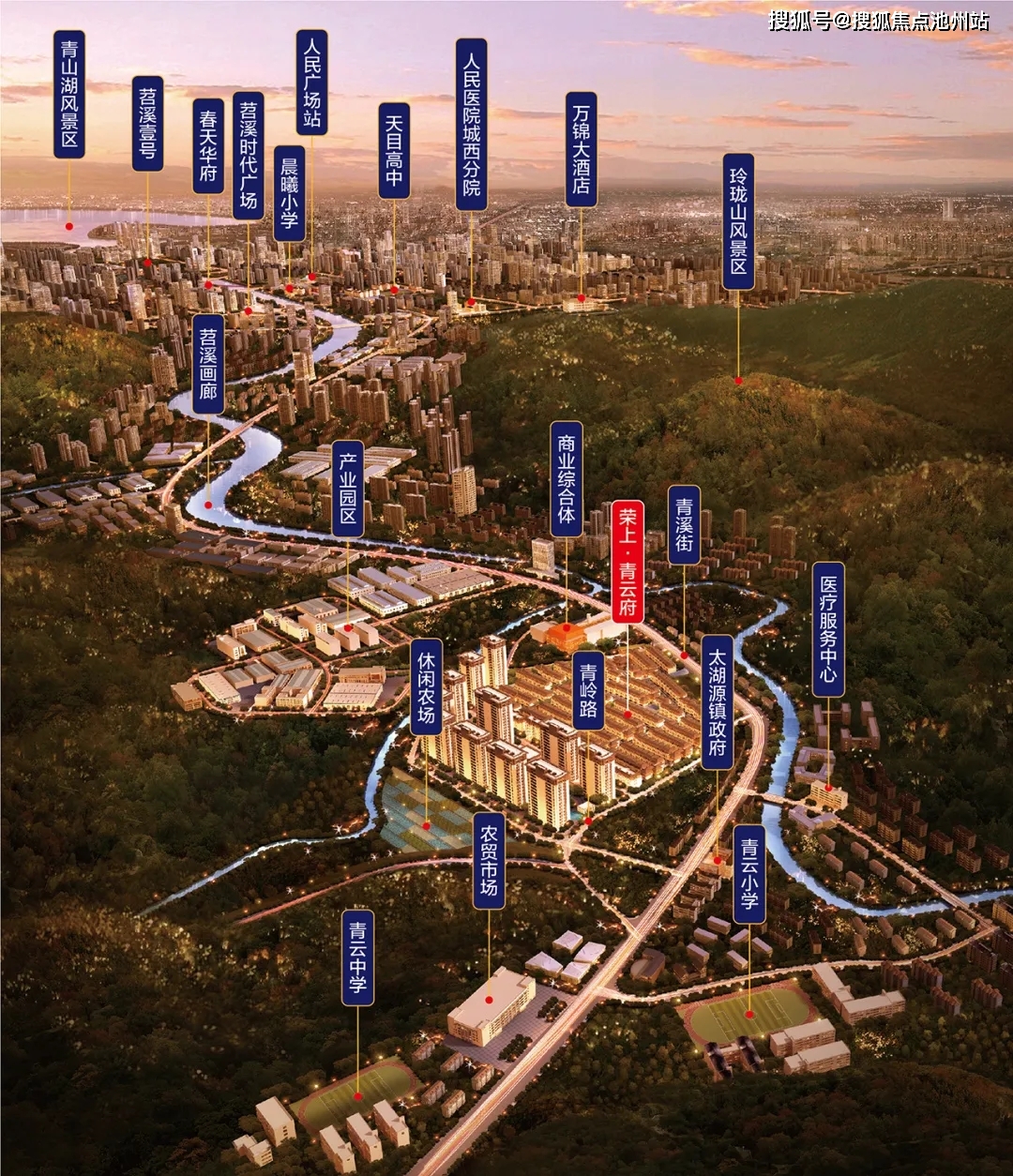 一脉苕溪画廊,离尘不离城,太湖源头、神龙川风景旅游渡假区、天目山风景区,三大风景名胜环绕;项目周边规划逾10000方太湖源商业综合体、网红鱼鳞坝、休闲绿道、共享农场......荟萃城市山水生活大境。