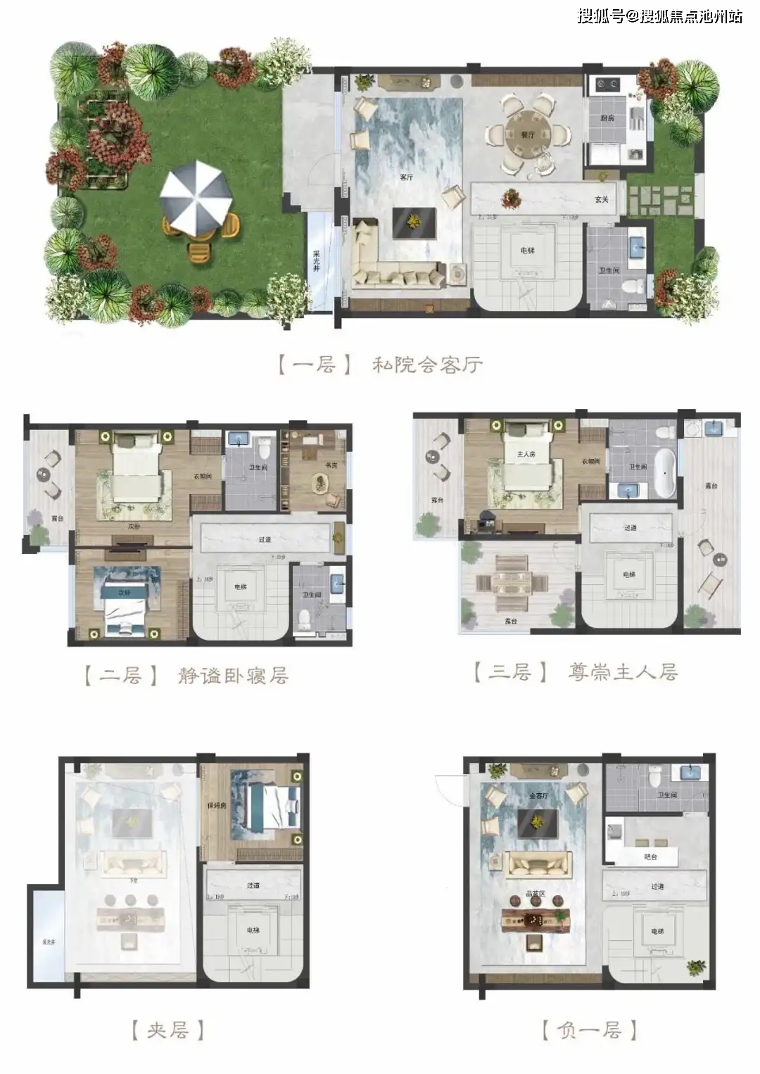 一层拥有双重私家院落,私院会客厅,尊显大户风范。