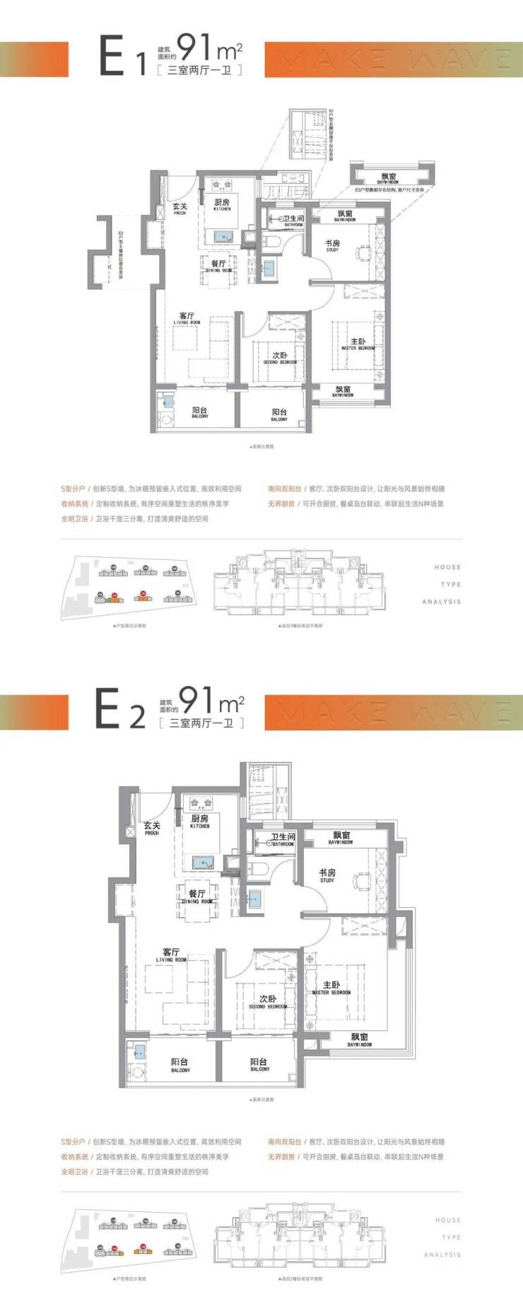 创新的S型分户墙设计,预留嵌入式冰箱位,与邻里借位为生活扩容