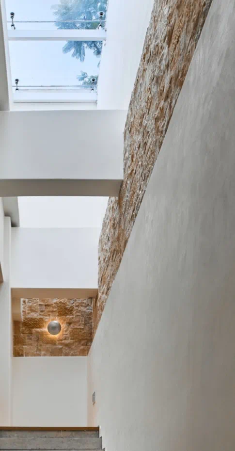 艺术空间位于整个项目正中央,以美术馆作为设计模板,内部的空间规划和动线是极简主义的几何风,用高低起伏的楼梯制造错落感。