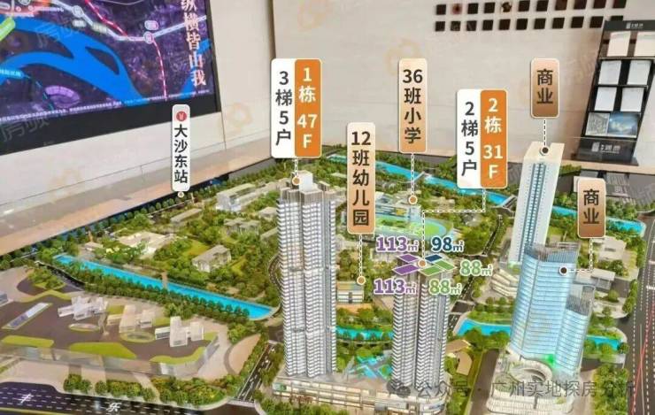 项目距离地铁5/7号线换乘站大沙东站约300-400米,5号线可直达金融城、珠江新城,7号线3站即达科学城,8站到长隆万博,地铁通勤优势明显。