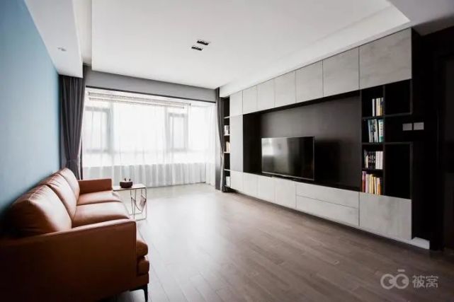 曾经流行的电视背景墙只顾单纯凹造型,现在,设计从炫目回归实用本质,做整面墙收纳柜再将电视机嵌入其中,一面墙满足N个需求。