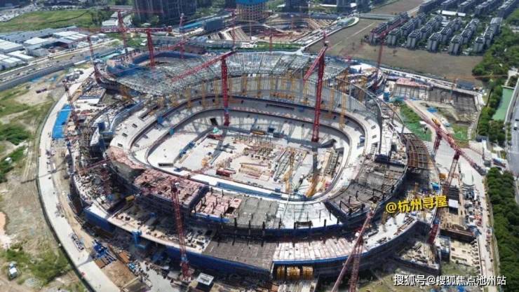 西南侧约1公里处还有在建余杭国际体育中心,项目主要由6万座专业足球场、18000座综合体育馆、游泳馆组成。