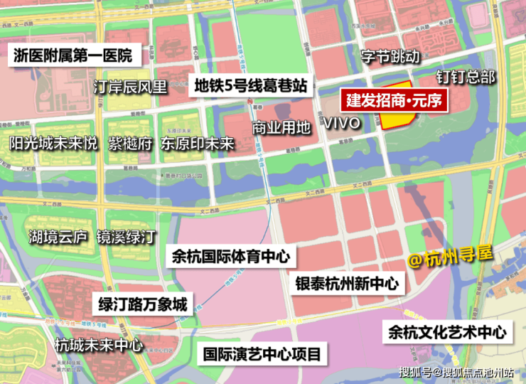 建发招商·元序地处未来科技城核心区,位于地铁5号线葛巷站附近,西侧一路之隔为VIVO全球AI研发中心,距离在建绿汀路万象城约1.5公里,主要适合未科周边工作的购房需求关注。