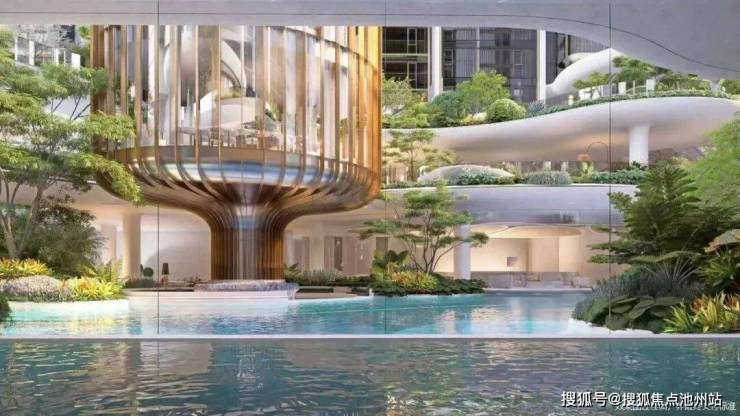 配置方面,规划有超百米宽大门、下沉式庭院、会所、恒温泳池、健身房、私宴厅、全域风雨连廊等。