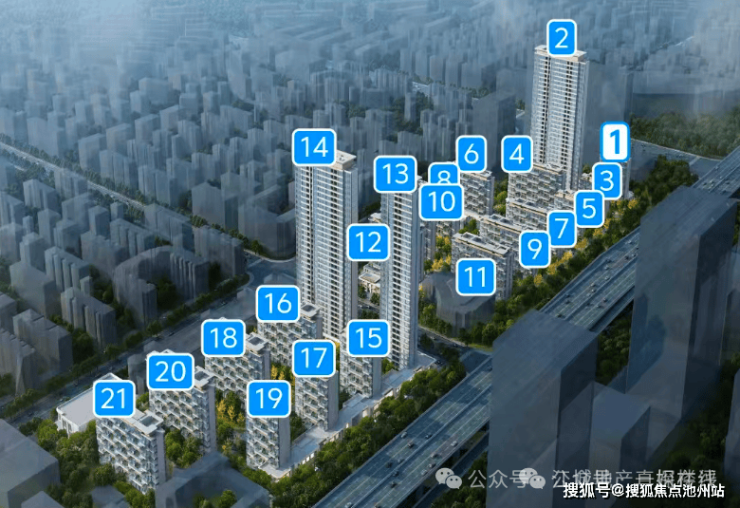 招商缦境揽阅项目共包含21栋住宅,除了2、13、14号楼为32层的高层之外,其余楼栋均为9-10层的小高层,小高层是户户带有空中花园的真四代。