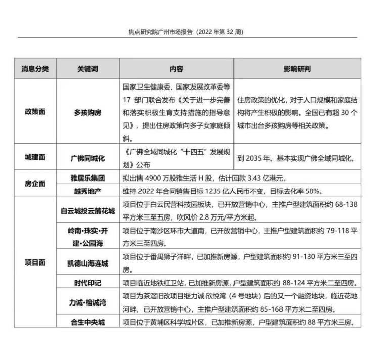 广州周报 | 住房政策将向多子女家庭倾斜,多个新盘新领预售证