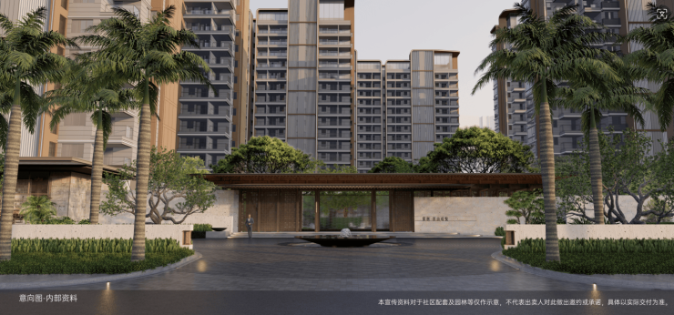 项目采取一轴(度假七境)、一环(600米雨林康养环)、九大院落(禅意雅趣)的归家动线尊享设计,入户采用双大堂设计,赋予居者尊崇的格调生活及归家仪式感。
