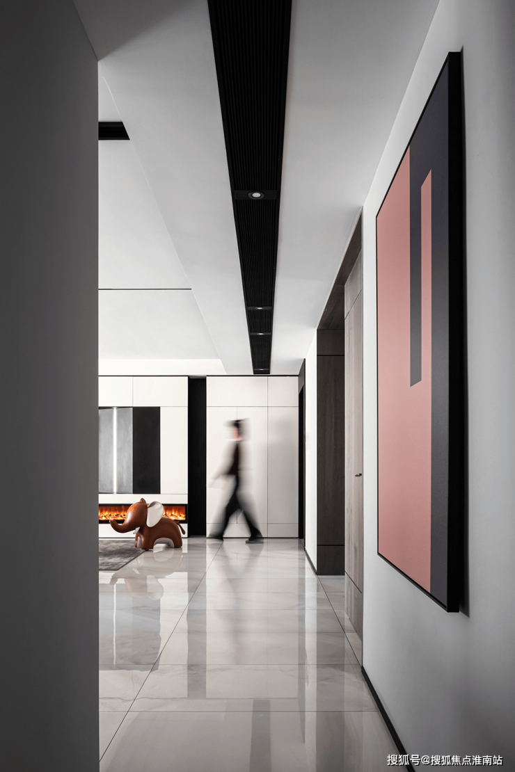 黑白主色调风格精简而雅致,搭配了胡桃木的质感与颜色,使得整体空间看上去极具层次感。