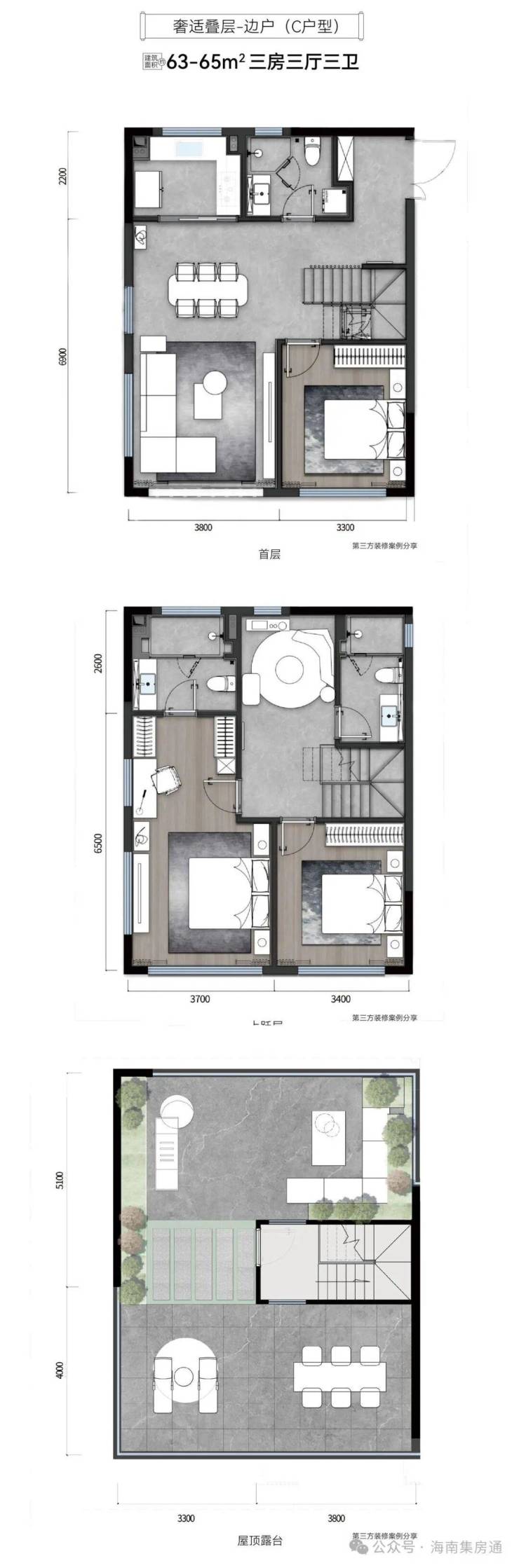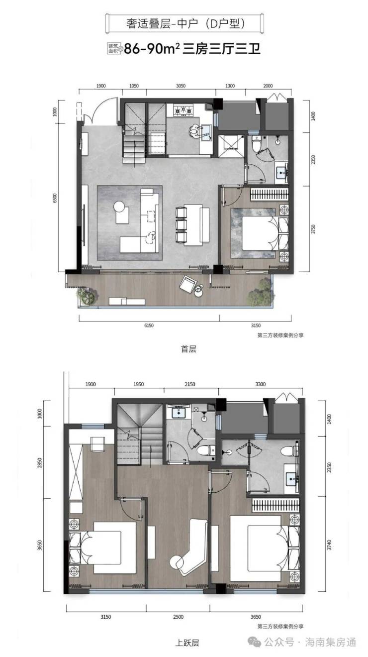 叠层:63-90㎡ 3+1房3卫总价:180-260万