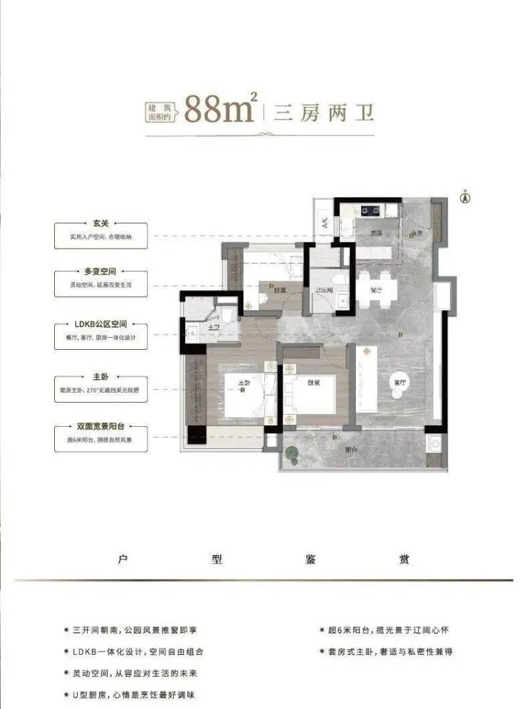 ②建面约88㎡