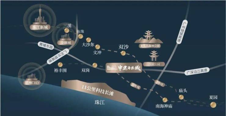 城市战略:2024年《广州东部中心总体规划》强调:东进发展是广州城市战略的主线!是广州第二 CBD 的重要组成部分,海丝城在广州整体沿珠江东进战略中,与珠江新城、琶洲形成广州“黄金三角”,具有不可替代的“战略性中间区位”。