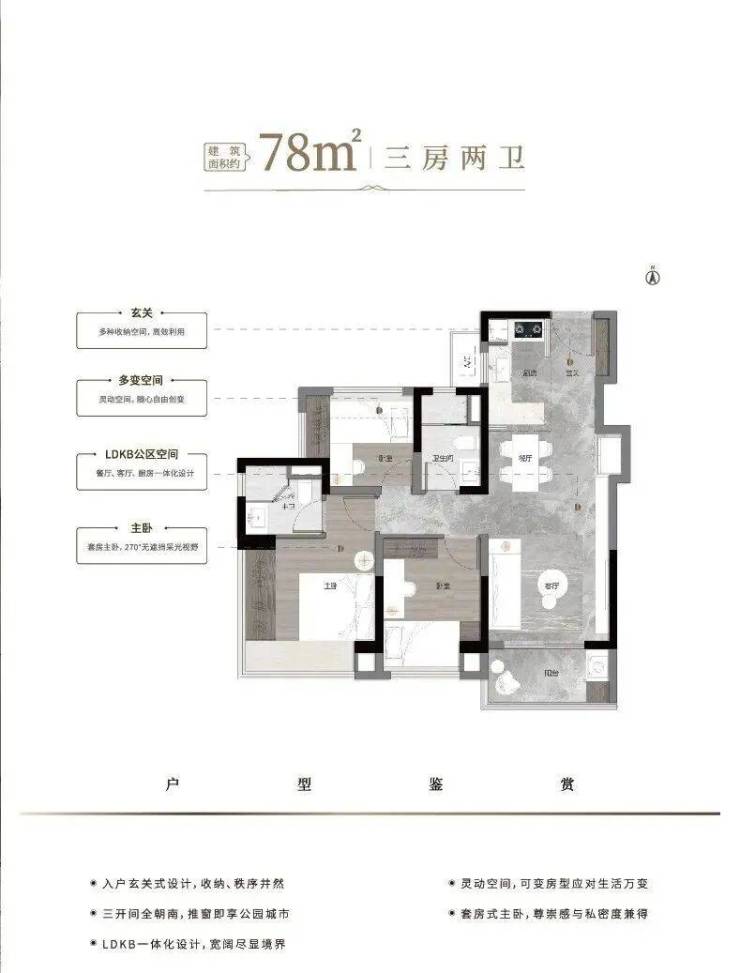 ①建面约78㎡