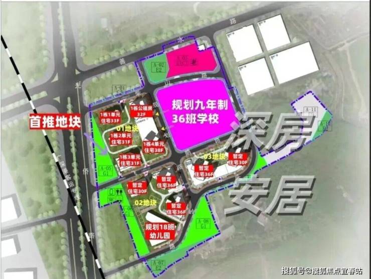 共由5栋总高31-38层的住宅组成,其中1栋1单元住宅33F,1栋2/3单元住宅31F,1栋4单元住宅38F,1栋5单元公租房32F,小区地下车库配建有公交首末站。