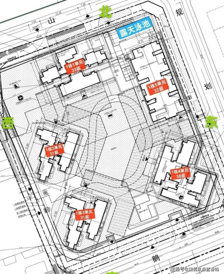 总栋数及楼高:5栋,31-38层
