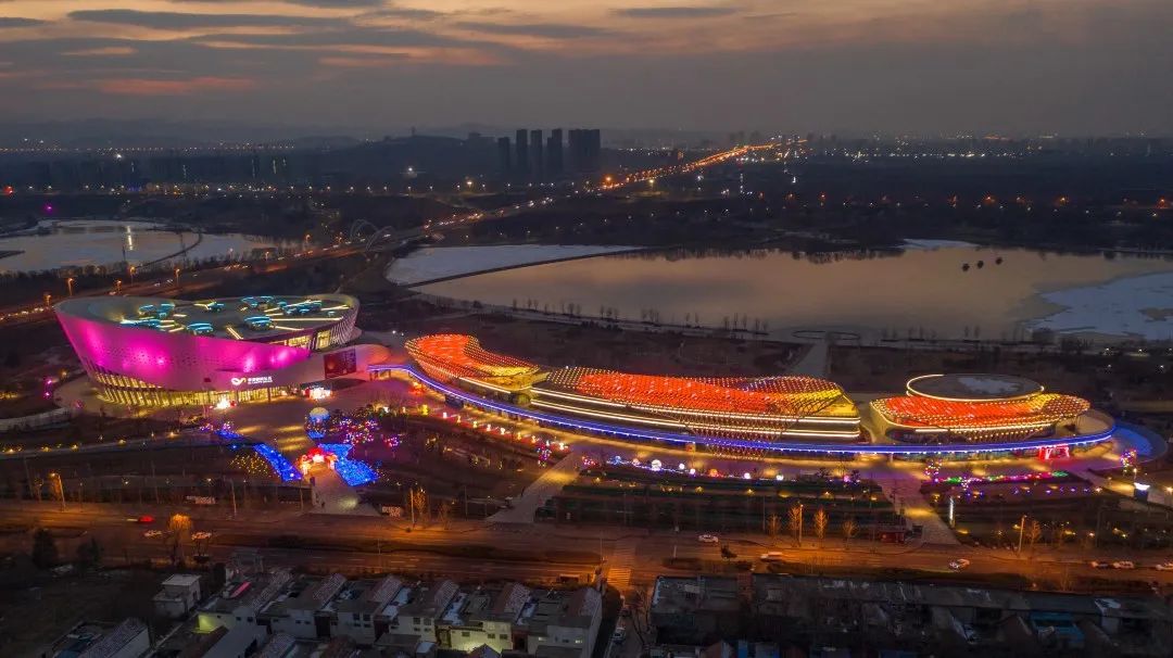 济南华侨城欢乐荟灯火辉煌,花灯交相辉映,花灯璀璨点亮,造型各异的花灯,把济南华侨城欢乐荟装扮成一个色彩斑斓的梦幻世界。