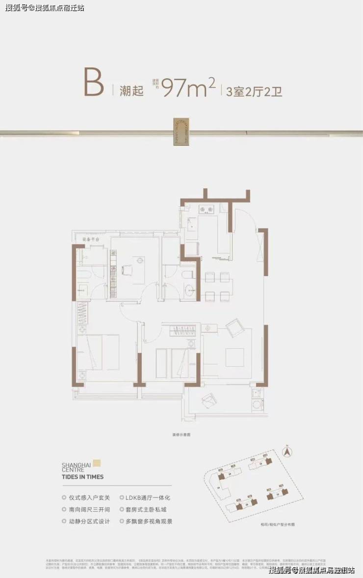 在格局上,户型三开间朝南+动静分离,室内通风、私密性俱佳。