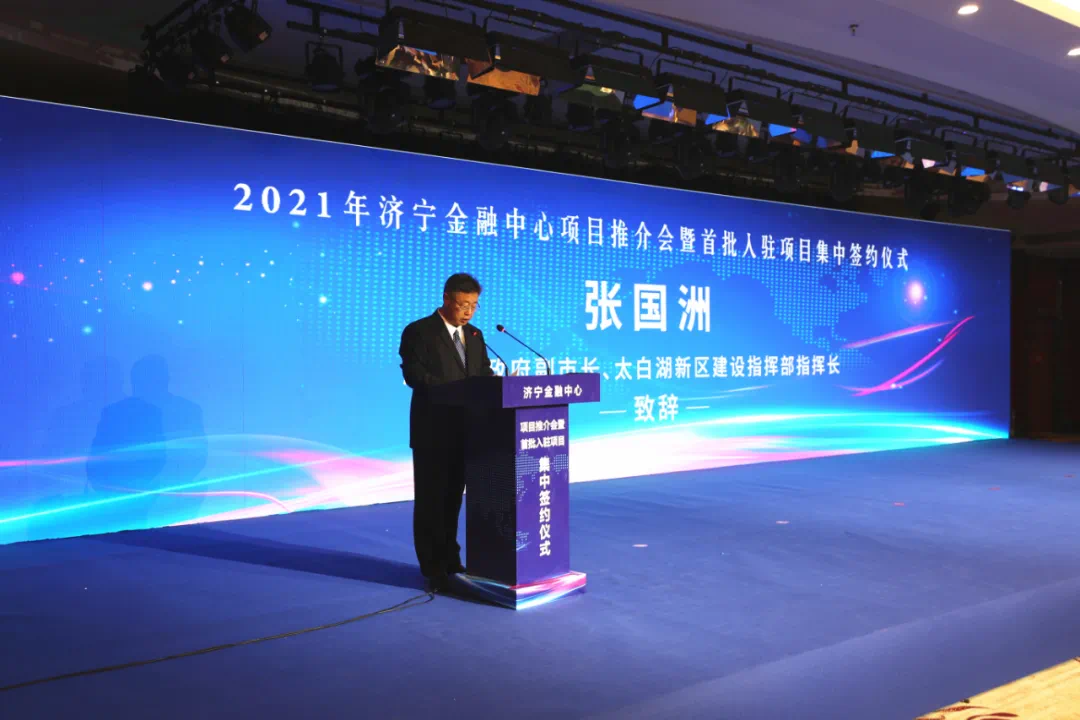 近日,2021年济宁金融中心项目推介会暨首批入驻项目集中签约仪式在太白湖新区举行。