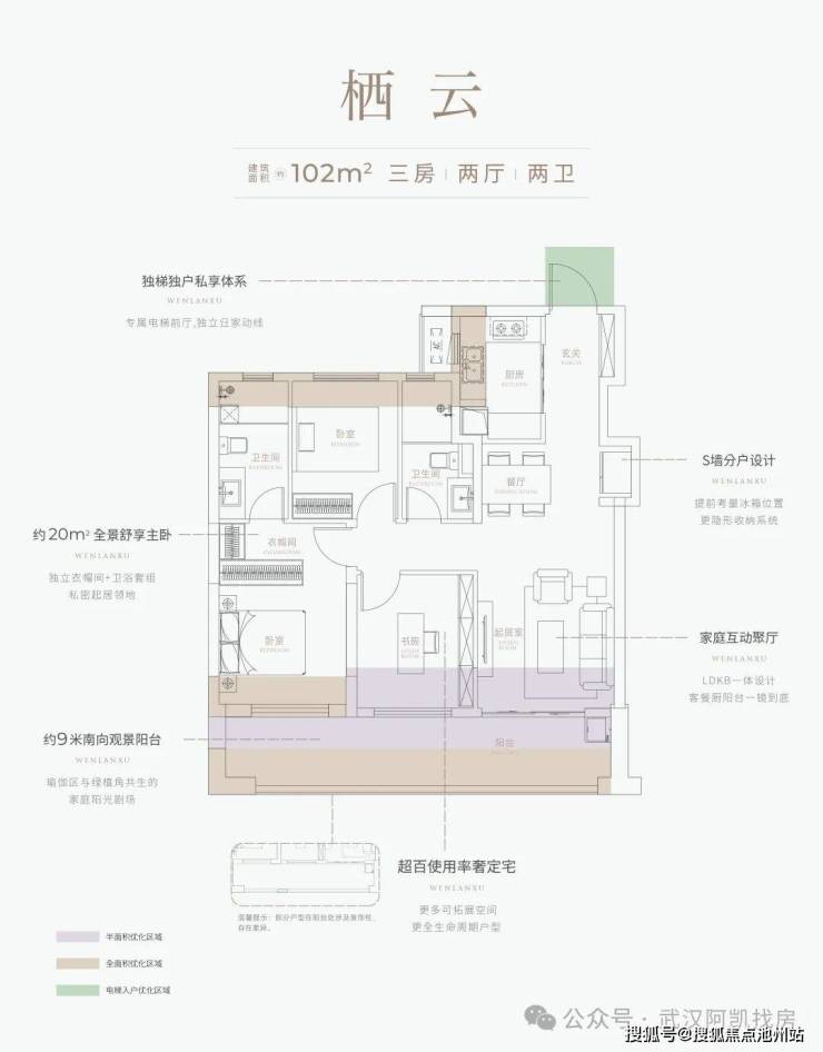 硬核产品力 • 首开户型:102㎡三房/125㎡四房(得房率超100%) • 建筑规制:1-5号楼47层超高层,6号楼33层 • 空间魔法:专梯专户设计,四代住宅垂直绿化体系 • 开发保障:硚口城建全资开发,楼面价6847元/㎡