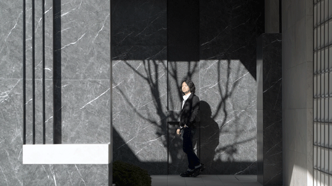 入口空间临街而设,开放式的社交空间形态与层叠水景区域相洽、延展,叮咚乍响之间,空间的活性得以重塑,与街景之间达到了一种自适的平衡感,进可享城市繁华,退可拥青林谧境。