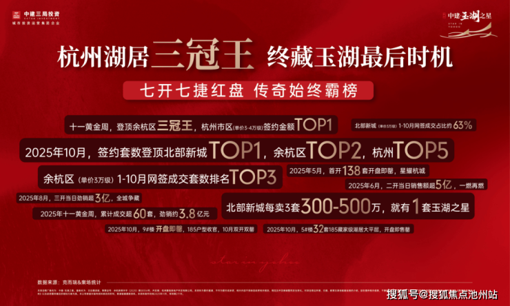 如果说“领誉”是品质的背书,那么“霸榜”就是市场最直接的投票。2025年,中建·玉湖之星将“热销”刻入项目基因,一整年的持续火爆,成就杭州楼市的“玉湖现象”。