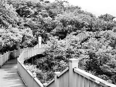 步道分成了两段,两边都可以走,并且有台阶栈道、石板台阶、塑胶跑道三种路面,不仅可以徒步,还能骑车哦,走起来颇有乐趣。