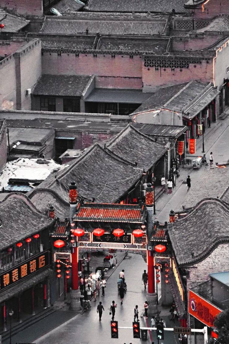 山西祁县晋商老街,街道两侧遍布明清时期的茶庄、烟店、票号、钱庄、当铺等商铺旧址和商贾宅院