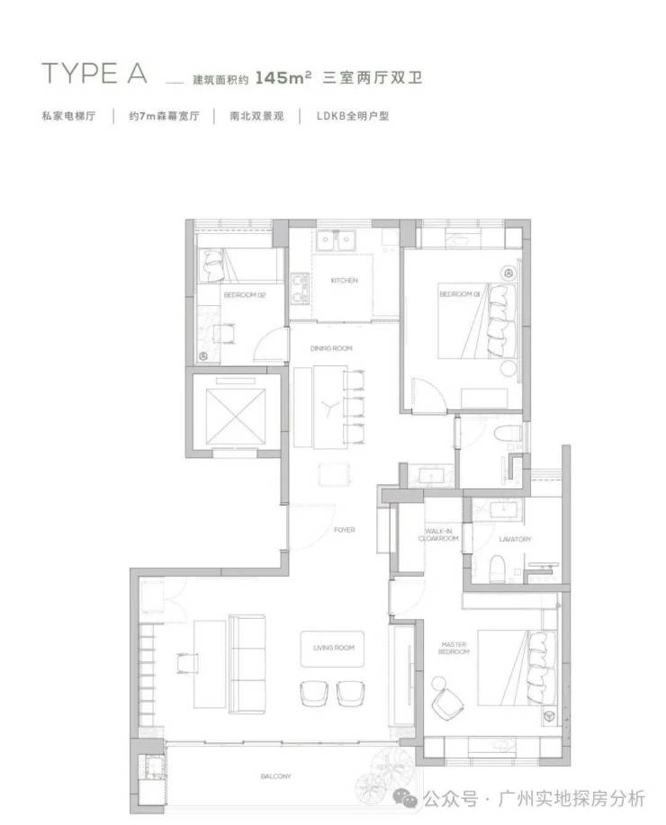3、户型设计传统,部分户型为上一代设计,如145㎡仅三房,与新规后的大平层产品相比,空间利用率和功能性稍显不足。