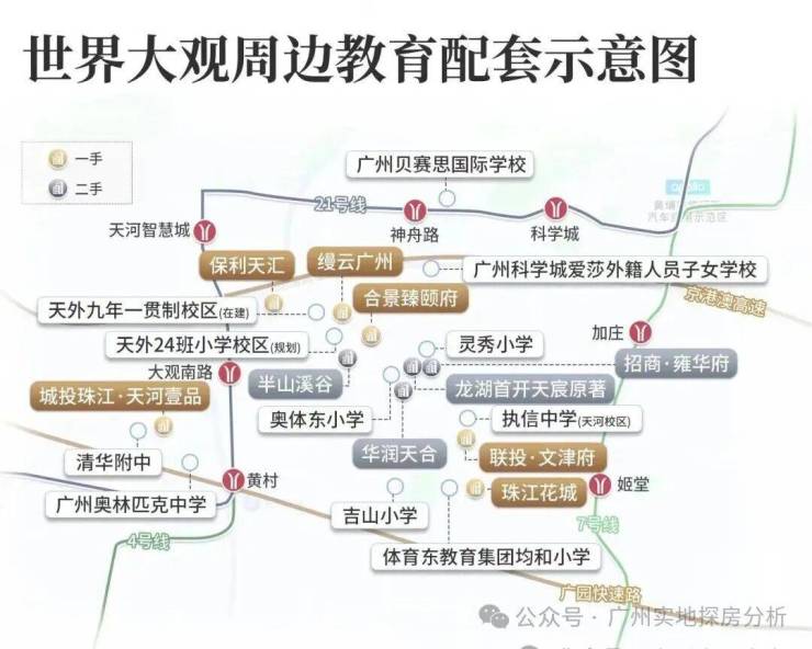 2、教育配套优质,社区内自建12年公立教育体系,引入天河外国语学校集团办学,涵盖幼儿园至初中,周边还有清华附中、执信中学等6所名校,教育资源集中。