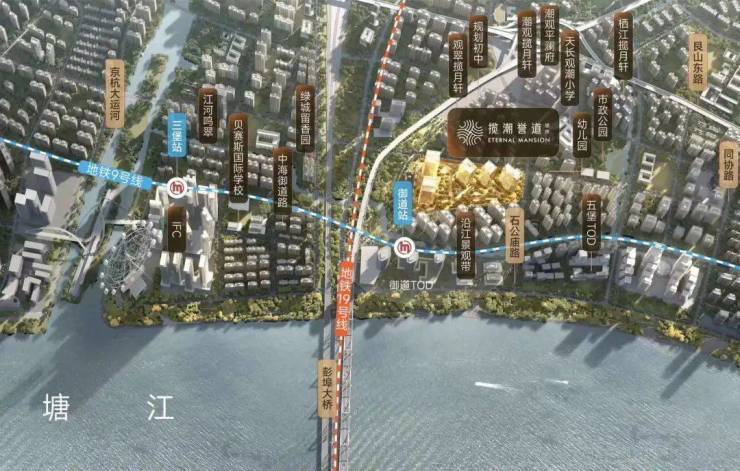 9/19号线御道站地铁口就在旁边,交通便利;距离钱塘江也只有约400米,距离IFC更是只有约1公里的距离,地理位置优越。